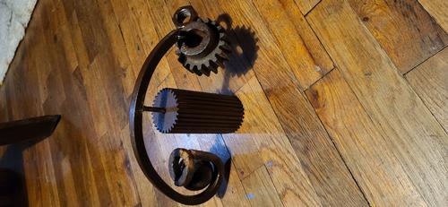 Heavy iron bits, balanced on pivot point, spins with manipulation, measures approx. 12" × 4",